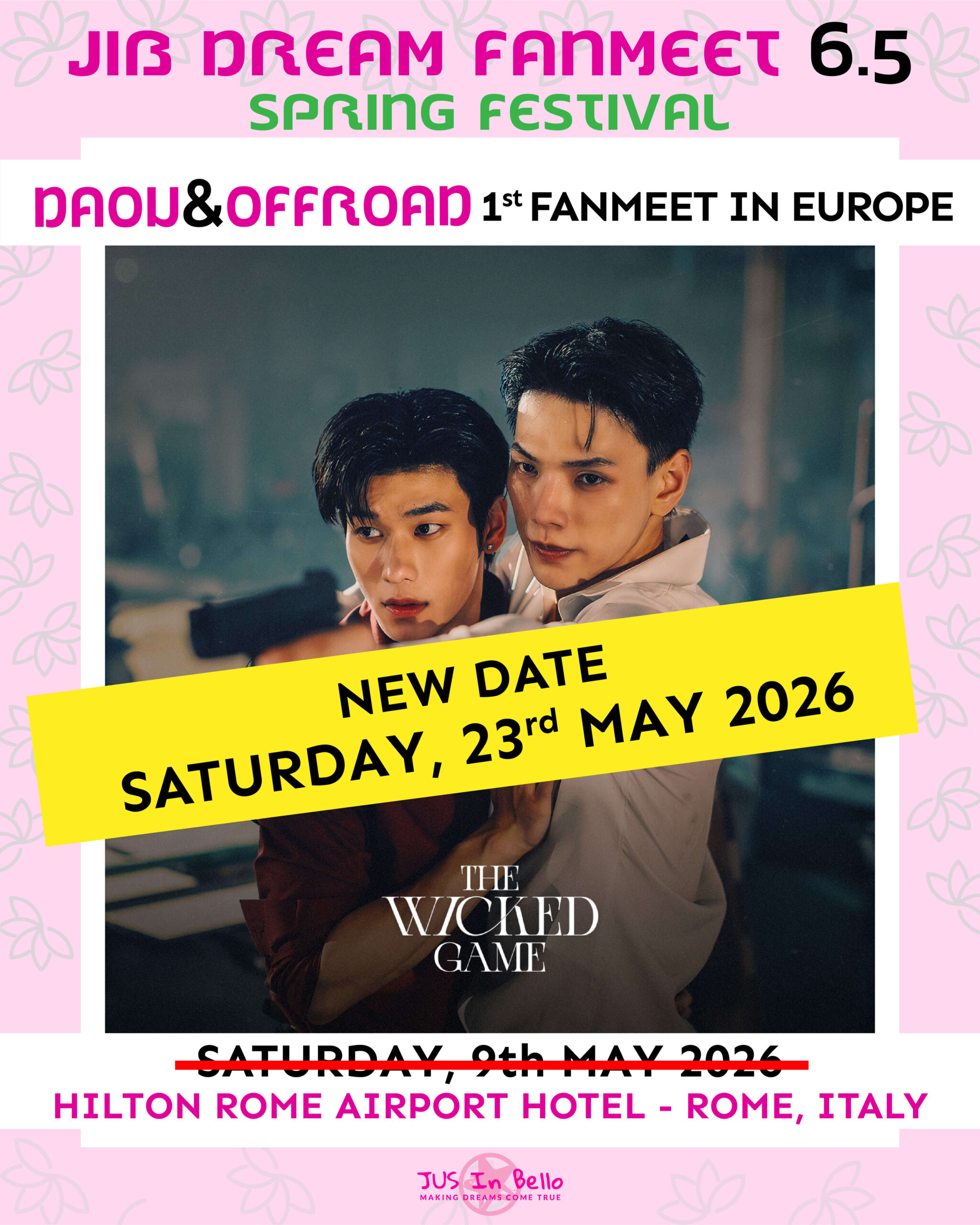 To accomodate Daou and Offroad‘s professional commitments, Jus In Bello and Open Label have decided to reschedule the date of their only European fanmeet to May 23rd, 2026.
